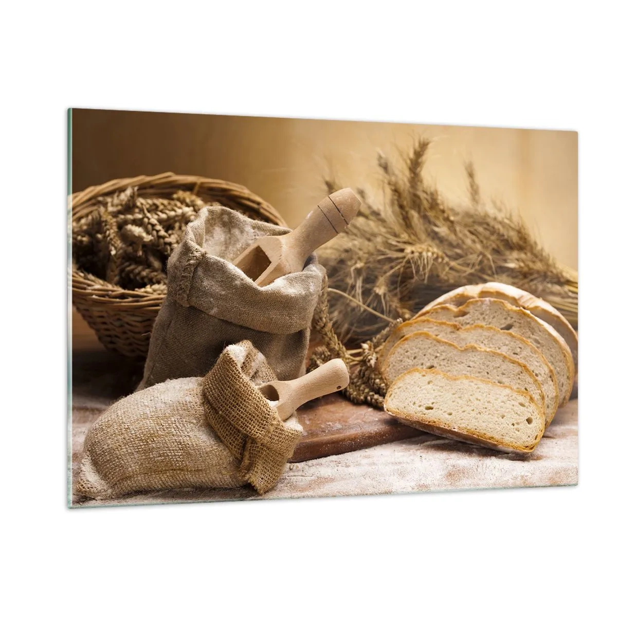 Obraz na szkle - Chleb, mąka i kłosy zboża w rustykalnym stylu - 120x80cm - Jak nożem uciął - Nowoczesna dekoracja ścienna do salonu, kuchni i sypialni ARTTOR