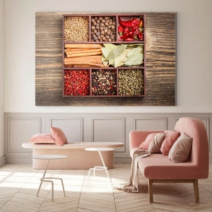 Niezależnie od tego, czy chcesz podkreślić kulinarny charakter swojej kuchni, wprowadzić do niej element artystyczny, czy stworzyć przytulną atmosferę, obraz "Kolorowe przyprawy w drewnianych przegródkach" będzie doskonałym wyborem. To dekoracja, która zachwyca, inspiruje i pozostaje w pamięci.