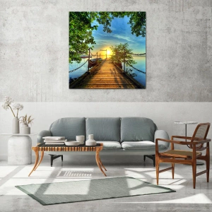 Obraz na szkle - Zachód nad wodą - 40x40 cm