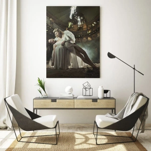 Obraz na szkle - Dwie postacie w ruinach z grą światła - 80x120cm - Duch starego teatru - Nowoczesna dekoracja ścienna do salonu i sypialni ARTTOR