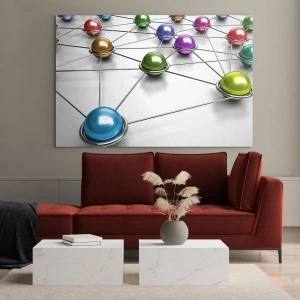 "Kolorowe kule połączone liniami" to idealny wybór dla osób, które cenią nowoczesne podejście do sztuki i dekoracji wnętrz. Jego minimalistyczny, a zarazem wyrazisty styl przyciąga uwagę i inspiruje do twórczych działań. Każdy detal, od refleksów na powierzchni kul po delikatne linie łączące je ze sobą, został precyzyjnie odwzorowany, aby oddać wrażenie przestrzeni i głębi.