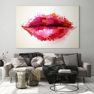 Obraz na szkle - Abstrakcyjne usta w żywych kolorach - 50x70cm - Czerwieńszy odcień czerwieni - Nowoczesna dekoracja ścienna do salonu, kuchni i sypialni ARTTOR
