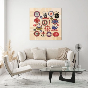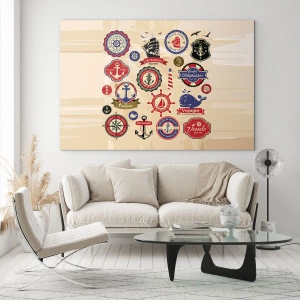 Obraz na szkle - Kolekcja marynistycznych grafik i symboli na jasnym tle - 70x100cm - Żeglarskie braterstwo - Nowoczesna dekoracja ścienna do salonu i sypialni ARTTOR