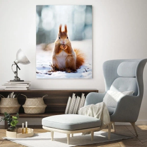Obraz na szkle - Wiewiórka w zimowym krajobrazie - 80x120cm - I co tak patrzysz? - Nowoczesna dekoracja ścienna do salonu i sypialni ARTTOR