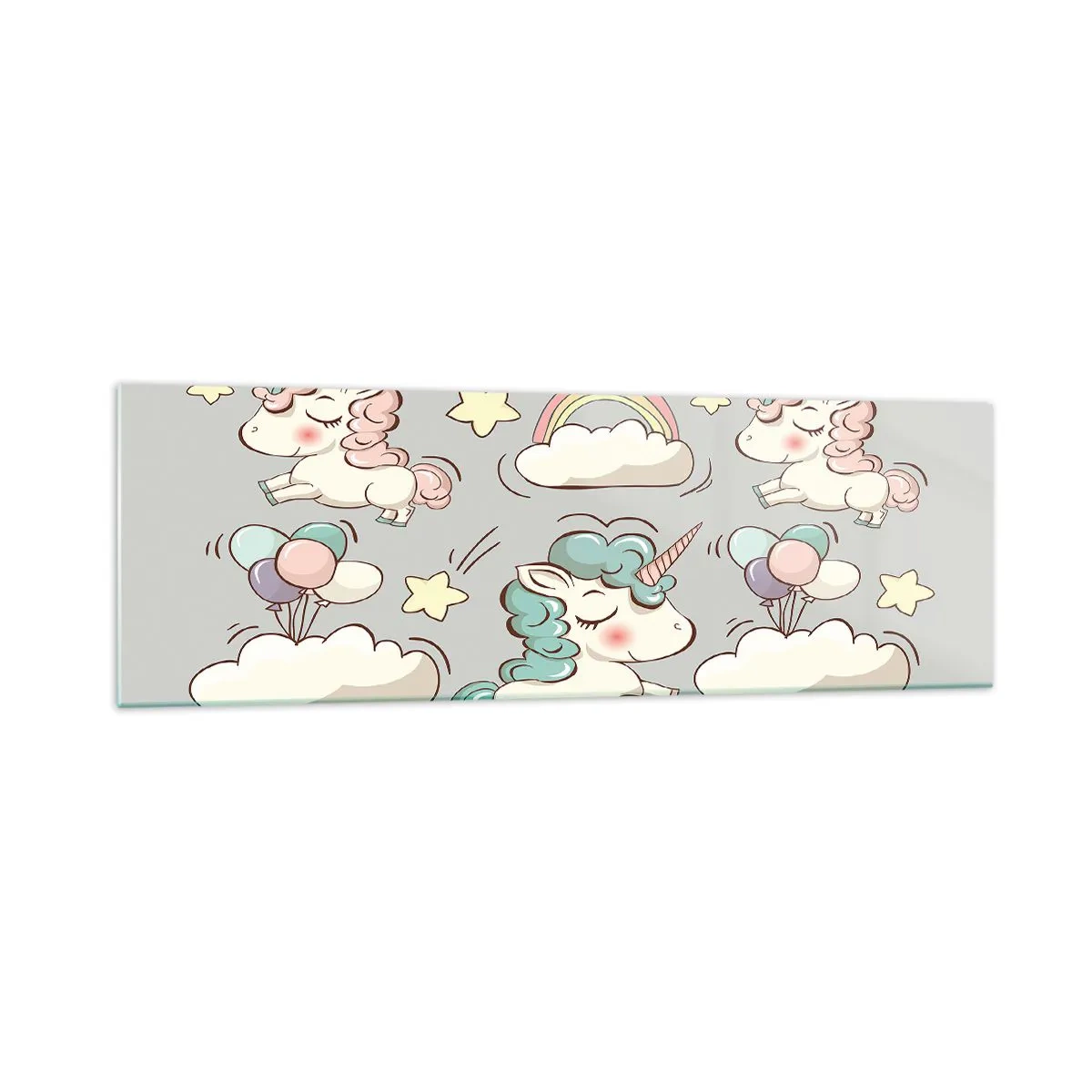 Obraz na szkle - Urocze jednorożce na pastelowym tle - 160x50cm - Na pewno istnieją… - Nowoczesna dekoracja ścienna do salonu i sypialni ARTTOR