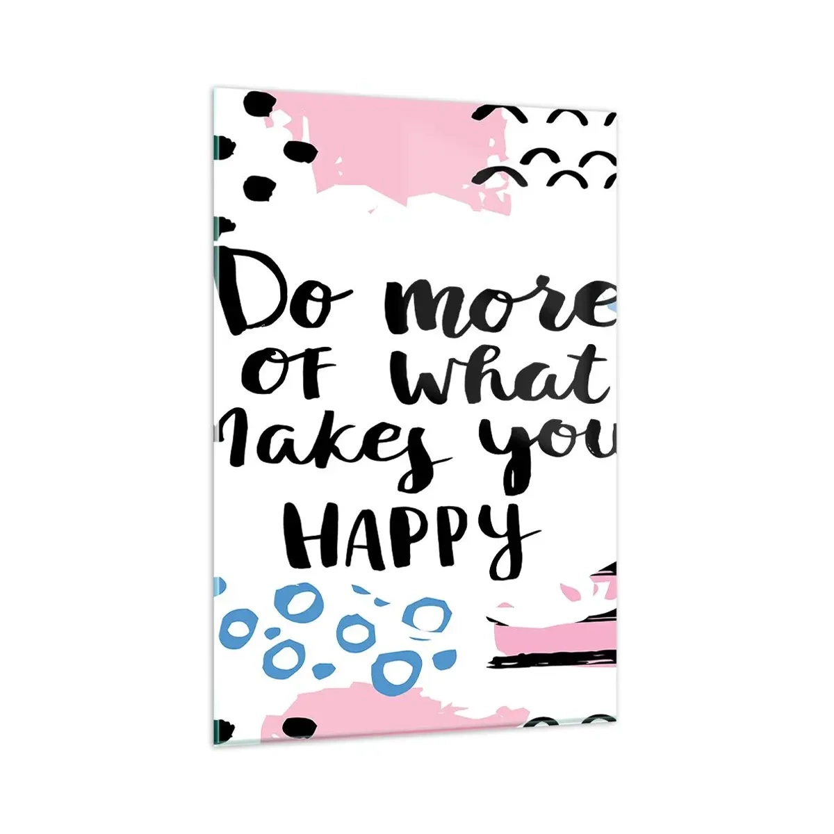 Obraz na szkle - Plakat z napisem 'Do more of what makes you happy' - 80x120cm - Jak być szczęśliwym - Nowoczesna dekoracja ścienna do salonu i sypialni ARTTOR