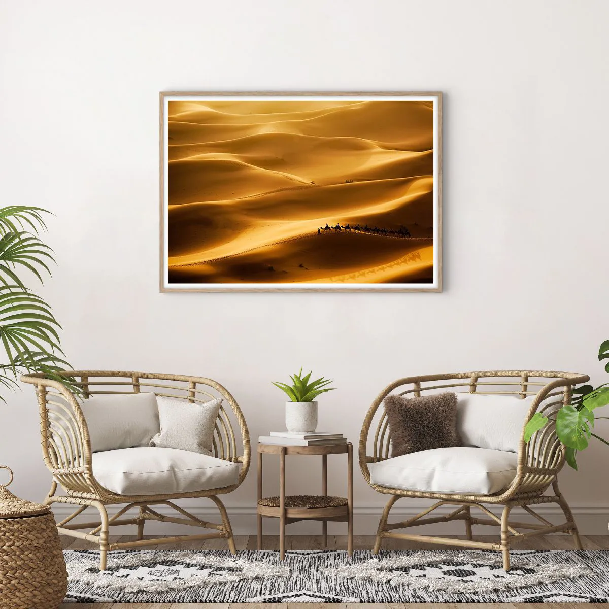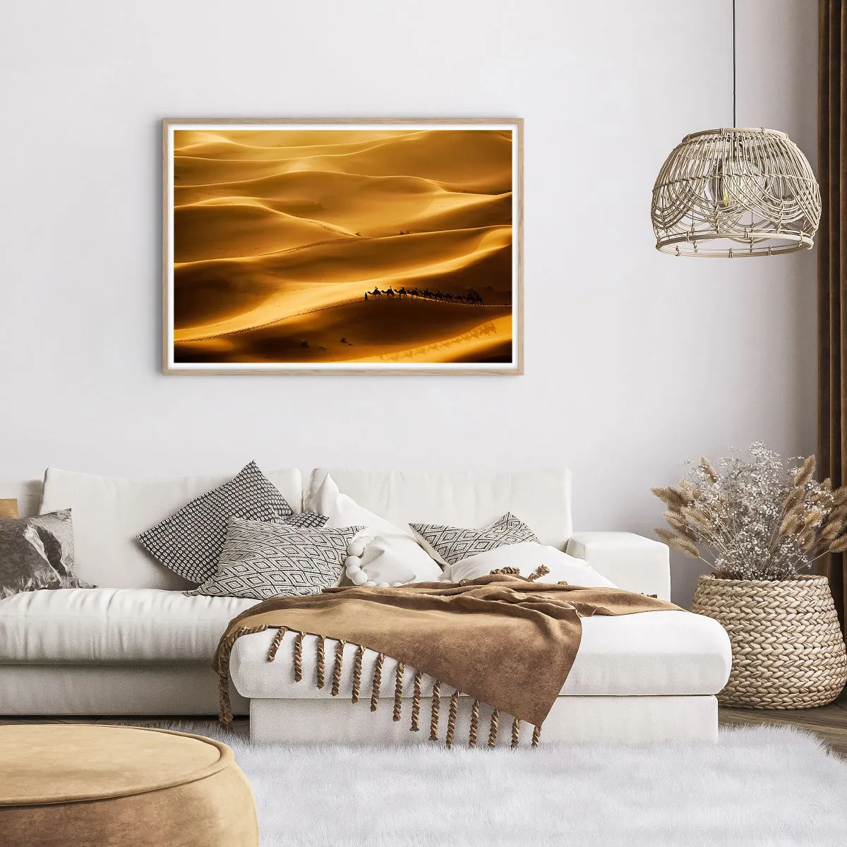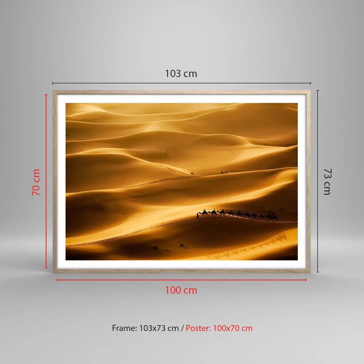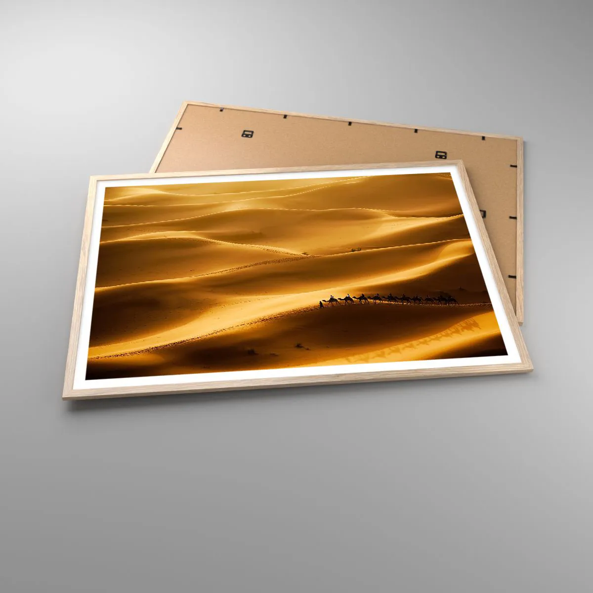 Plakat w ramie jasny dąb - Karawana na falach pustyni - 100x70 cm