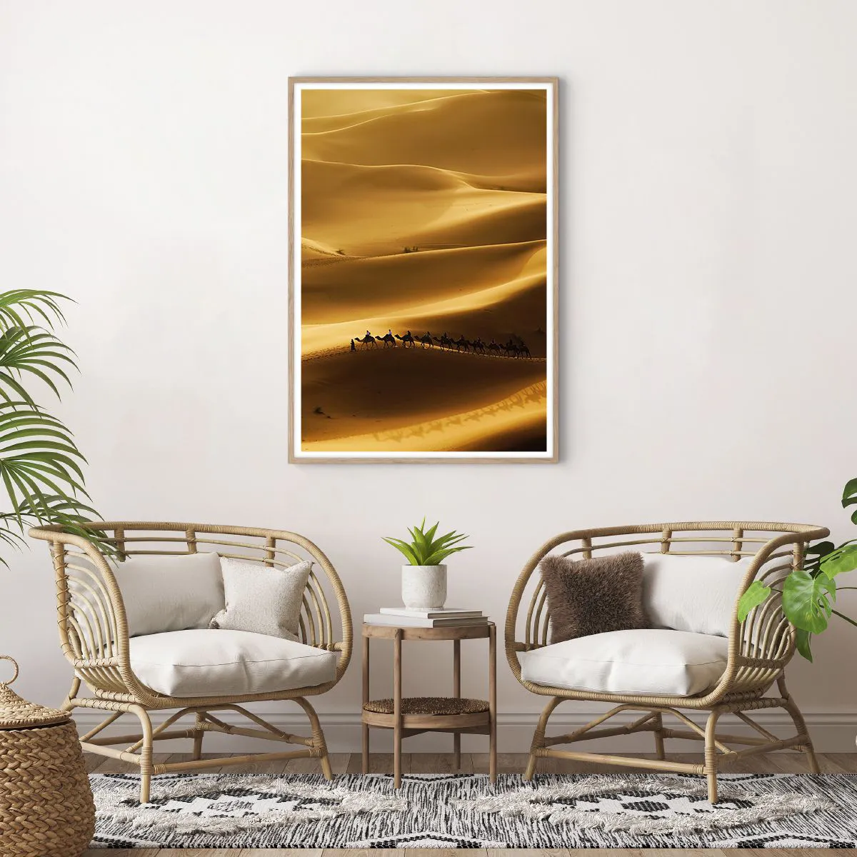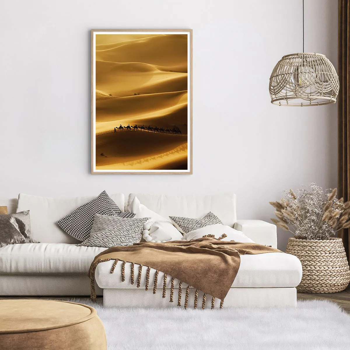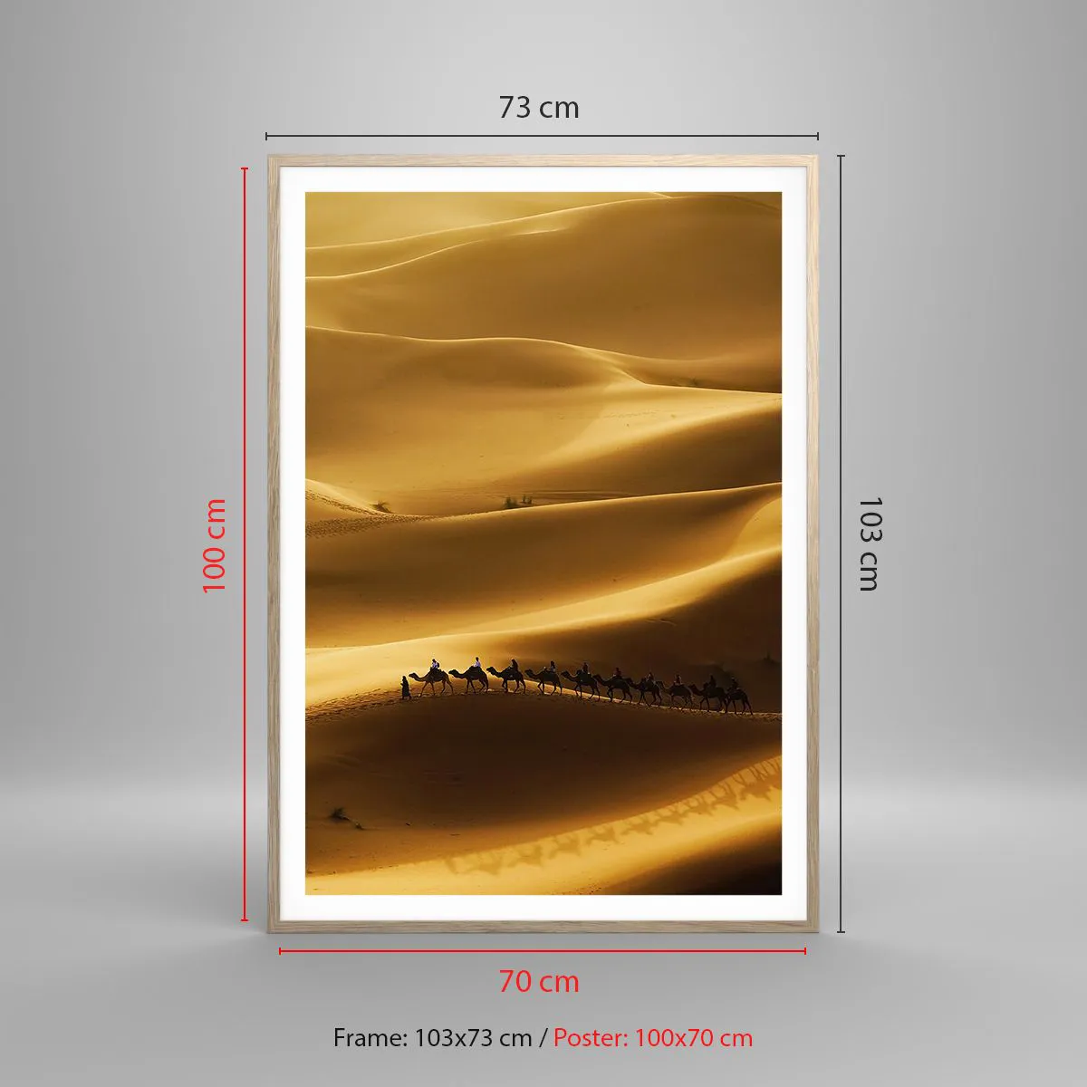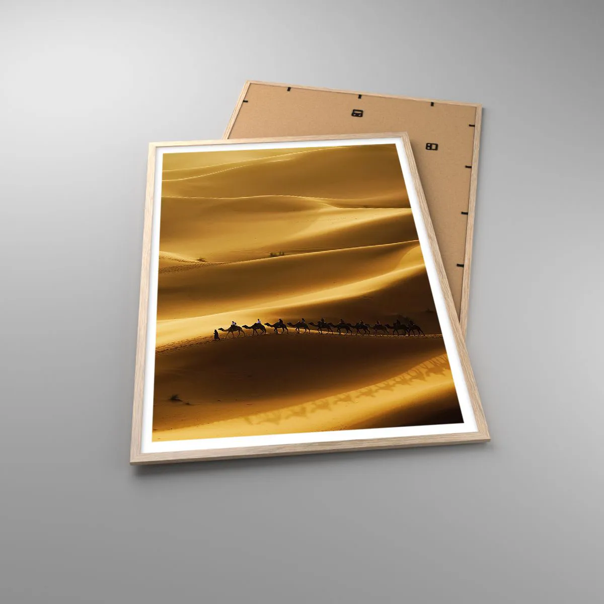 Plakat w ramie jasny dąb - Karawana na falach pustyni - 70x100 cm