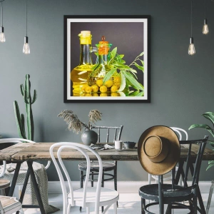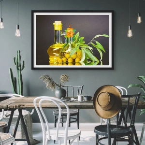 Plakat w czarnej ramie - Martwa natura z oliwkami i oliwą - 50x40 cm