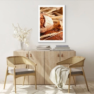 Plakat w białej ramie - Apetyczny, wonny, chrupiący - 40x40 cm