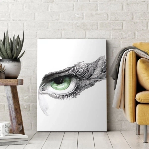 • Obraz przedstawia artystyczne oko z zieloną tęczówką i delikatnymi detalami rysunku, wprowadzający styl i elegancję do wnętrz.