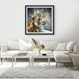 Motyw tygrysa wnosi do wnętrza dynamikę i siłę, jednocześnie wprowadzając element wyrafinowania i estetyki. Plakat doskonale komponuje się z wnętrzami w stylu nowoczesnym, industrialnym oraz klasycznym, dodając im charakteru i głębi.