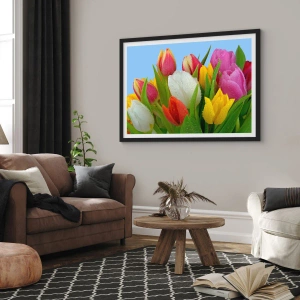 Plakat w czarnej ramie - Kwiatowa tęcza w kroplach rosy - 61x91 cm