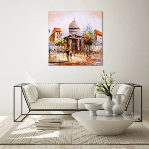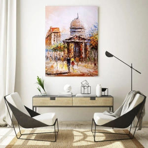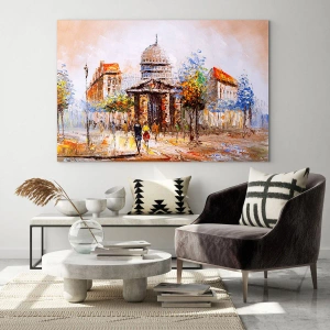 Obraz na szkle - Malownicza ulica miasta z zabytkowym budynkiem w tle - 50x70cm - Paryski spacer - Nowoczesna dekoracja ścienna do salonu, kuchni i sypialni ARTTOR