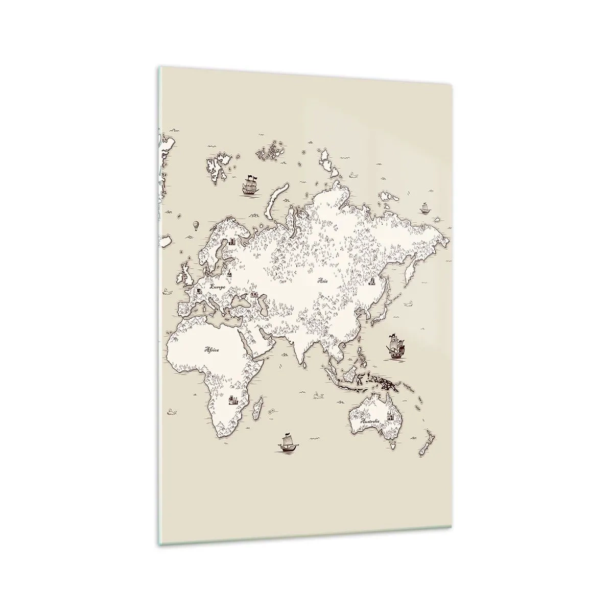 Obraz na szkle - Stylizowana mapa świata w odcieniach beżu i brązu - 70x100cm - Podróż dookoła świata - Nowoczesna dekoracja ścienna do salonu i sypialni ARTTOR