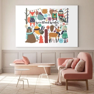 Obraz na szkle - Zimowy las z uroczymi zwierzętami w ilustracji - 120x80cm - Bajkowe święta w lesie - Nowoczesna dekoracja ścienna do salonu, kuchni i sypialni ARTTOR