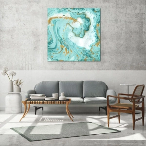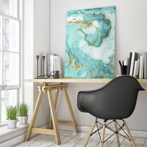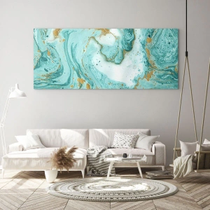 Obraz na szkle - Turkusowy marmur z akcentami złota w abstrakcyjnej kompozycji - 140x50cm - Pod wielką falą z epoki Edo - Nowoczesna dekoracja ścienna do salonu i sypialni ARTTOR