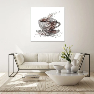 Obraz na szkle - Artystyczny rysunek filiżanki z ornamentami i parą - 50x70cm - Herbata dobra na wszystko - Nowoczesna dekoracja ścienna do salonu, kuchni i sypialni ARTTOR