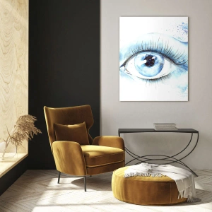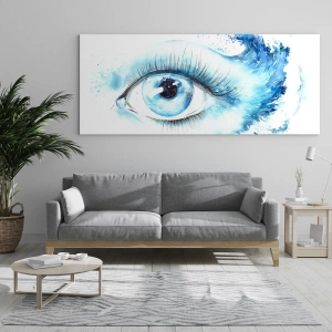 Obraz na szkle - Niebieskie oko w artystycznej akwareli - 50x70cm - Zanurzyć się w błękicie spojrzenia - Nowoczesna dekoracja ścienna do salonu, kuchni i sypialni ARTTOR