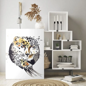 Obraz na szkle - Artystyczna akwarela z motywem geparda - 70x100cm - Drapieżna uroda - Nowoczesna dekoracja ścienna do salonu i sypialni ARTTOR