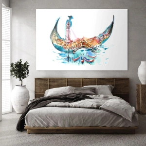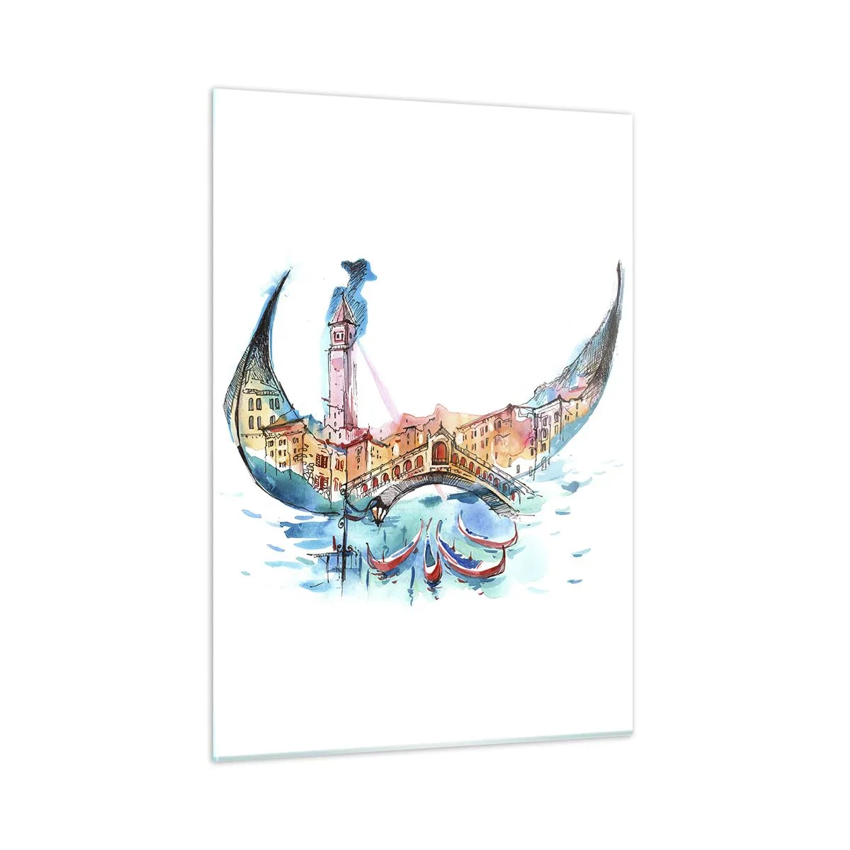 Obraz na szkle - Akwarelowa panorama Wenecji w formie maski - 50x70cm - Płyniemy przez miasto - Nowoczesna dekoracja ścienna do salonu, kuchni i sypialni ARTTOR
