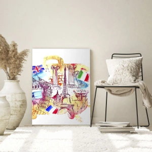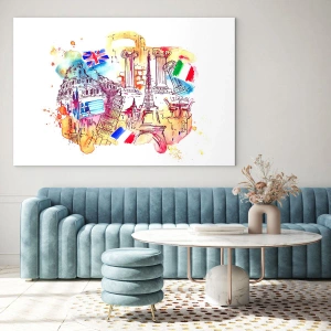 Obraz na szkle - Akwarela zabytków Europy z flagami krajów - 50x70cm - Europejskie tourne - Nowoczesna dekoracja ścienna do salonu, kuchni i sypialni ARTTOR