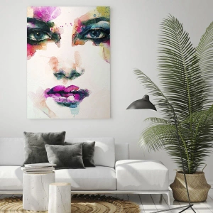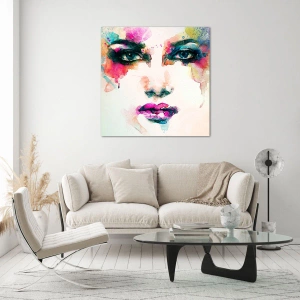 Obraz na szkle - Portret kobiety w akwarelowych barwach i detalach - 50x70cm - Portret malowany tęczą - Nowoczesna dekoracja ścienna do salonu, kuchni i sypialni ARTTOR
