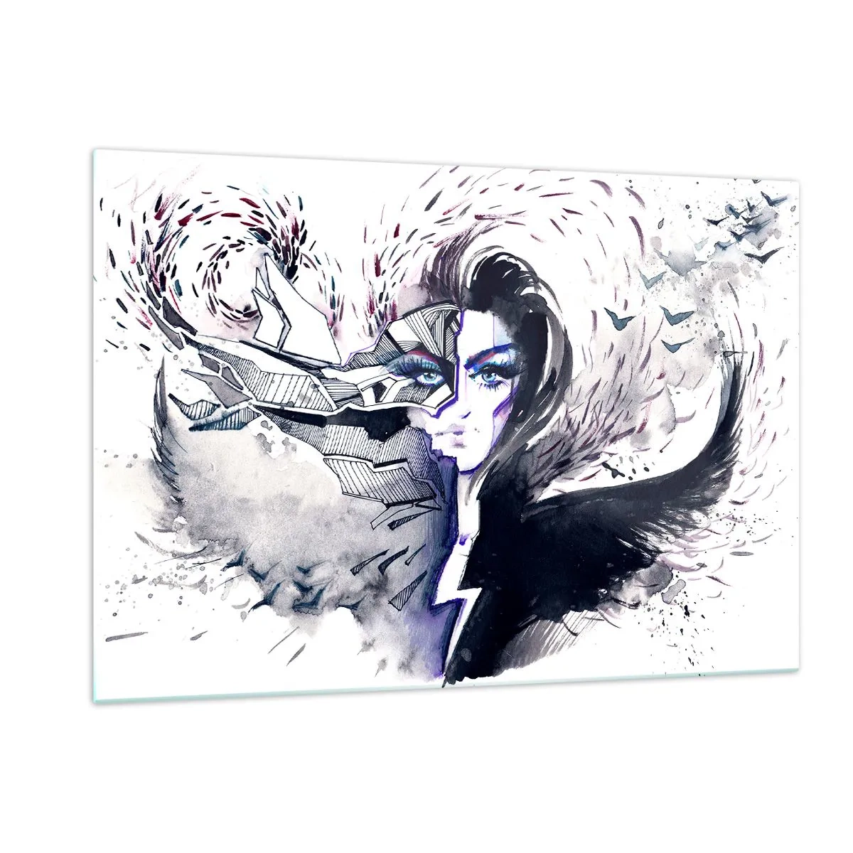 Obraz na szkle - Abstrakcyjny portret z dynamicznymi elementami i czernią - 120x80cm - Demoniczna i piękna - Nowoczesna dekoracja ścienna do salonu, kuchni i sypialni ARTTOR