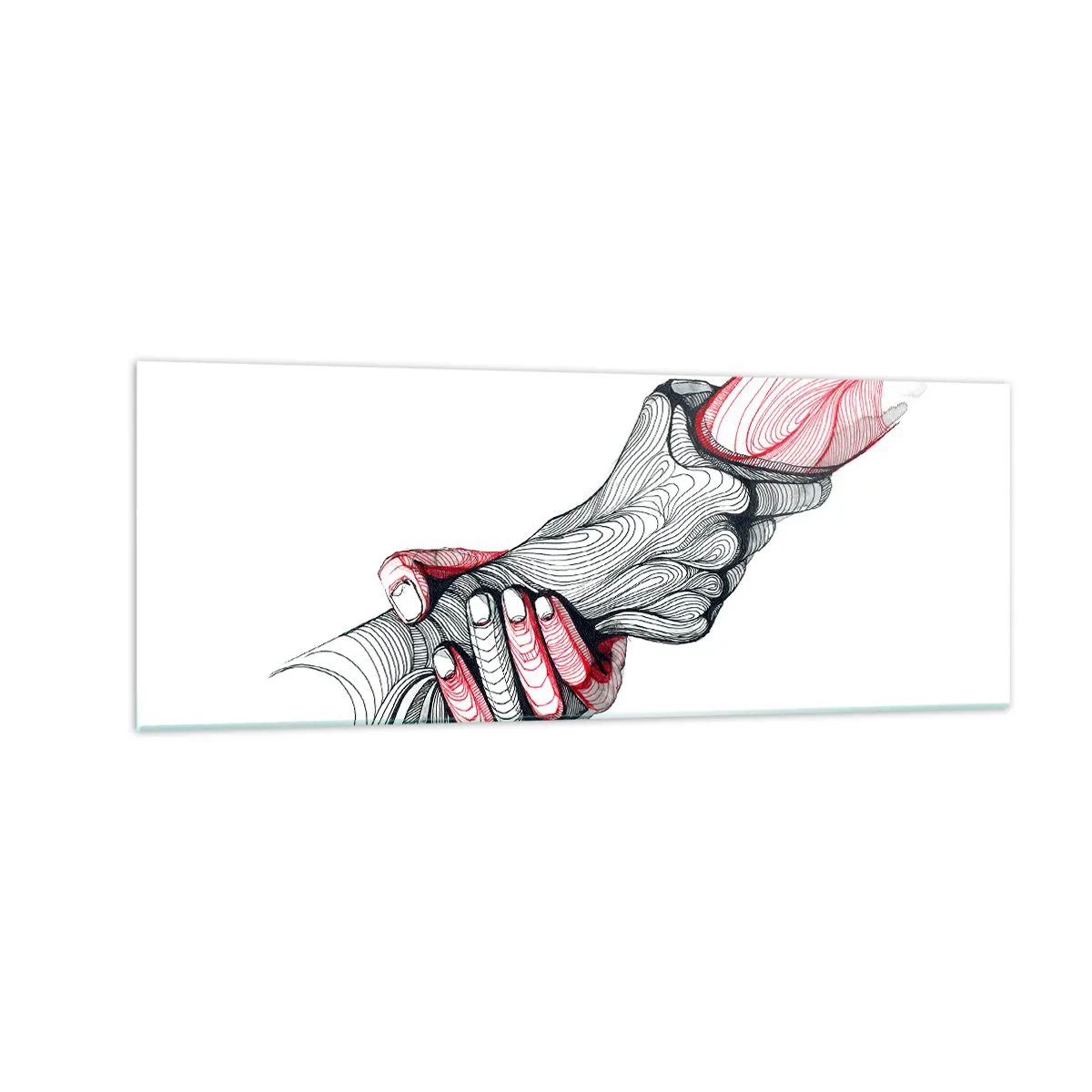 Obraz na szkle - Artystyczne ręce trzymające się nawzajem w minimalistycznym stylu - 140x50cm - Jesteś w dobrych rękach - Nowoczesna dekoracja ścienna do salonu i sypialni ARTTOR