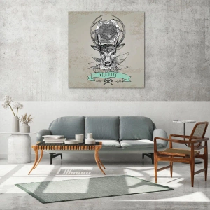 Motyw jelenia w tej formie symbolizuje dziką naturę, wolność i harmonię, a jego geometryczna stylizacja dodaje mu nowoczesnego wyrazu. Obraz doskonale komponuje się w przestrzeniach ceniących nietuzinkową sztukę, wzory i abstrakcyjne przedstawienia zwierząt.