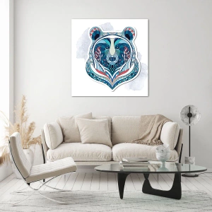 Obraz na szkle - Geometryczny niedźwiedź w odcieniach niebieskiego i czerwonego - 80x120cm - Eviva Grenlandia! - Nowoczesna dekoracja ścienna do salonu i sypialni ARTTOR