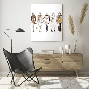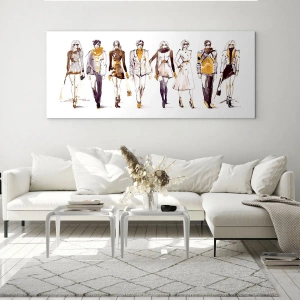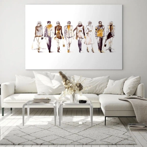Obraz na szkle - Grupa modnych postaci w stylu szkicowym na białym tle - 50x70cm - Niewymuszony szyk, swobodna elegancja - Nowoczesna dekoracja ścienna do salonu, kuchni i sypialni ARTTOR