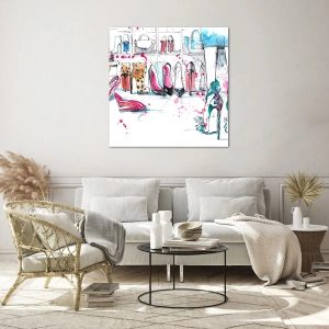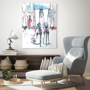 Obraz na szkle - Ilustracja z eleganckimi butami na szpilkach w sklepie - 50x70cm - Sezamie, otwórz się - Nowoczesna dekoracja ścienna do salonu, kuchni i sypialni ARTTOR