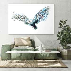 Obraz na szkle - Ilustracja przedstawiająca sowę z gałęziami zamiast skrzydeł - 100x70cm - Na skrzydłach lasu - Nowoczesna dekoracja ścienna do salonu, kuchni i sypialni ARTTOR