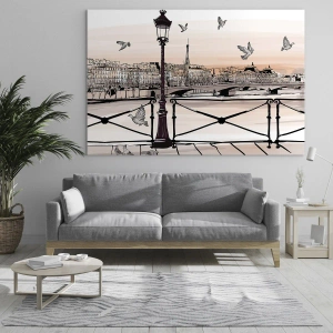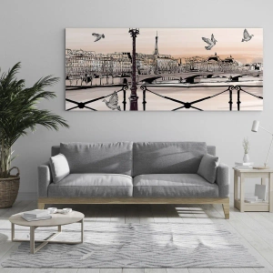 Obraz na szkle - Paryski widok z latarnią i mostem - 120x50cm - Nad dachami Paryża - Nowoczesna dekoracja ścienna do salonu i sypialni ARTTOR