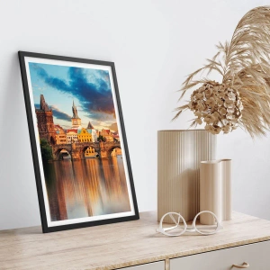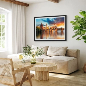 Plakat w czarnej ramie - Zabytkowy most nad rzeką w świetle zachodzącego słońca - 70x50cm - Piękna od wieków - Nowoczesna dekoracja ścienna do salonu i sypialni ARTTOR