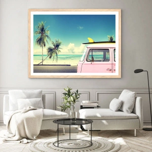 Plakat w ramie jasny dąb - Wakacje czas zacząć - 40x40 cm