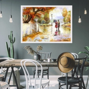 Plakat - Spacer w jesiennym parku z parasolem - 100x70cm - Romantyczna jesień w parku - Nowoczesna dekoracja ścienna do salonu i sypialni ARTTOR