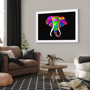Plakat w białej ramie - Słoń, który kochał kąpać się w tęczy - 30x30 cm