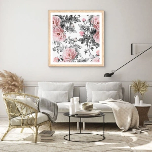 Plakat w ramie jasny dąb - Zagubić się w kwiatach róż - 50x50 cm