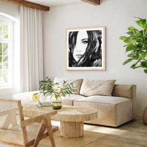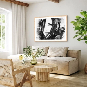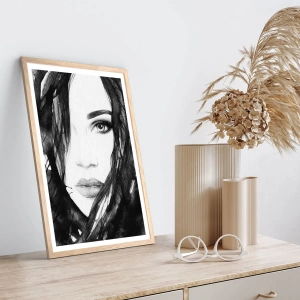 Plakat w ramie jasny dąb - Portret damy w czerni i bieli - 100x70 cm