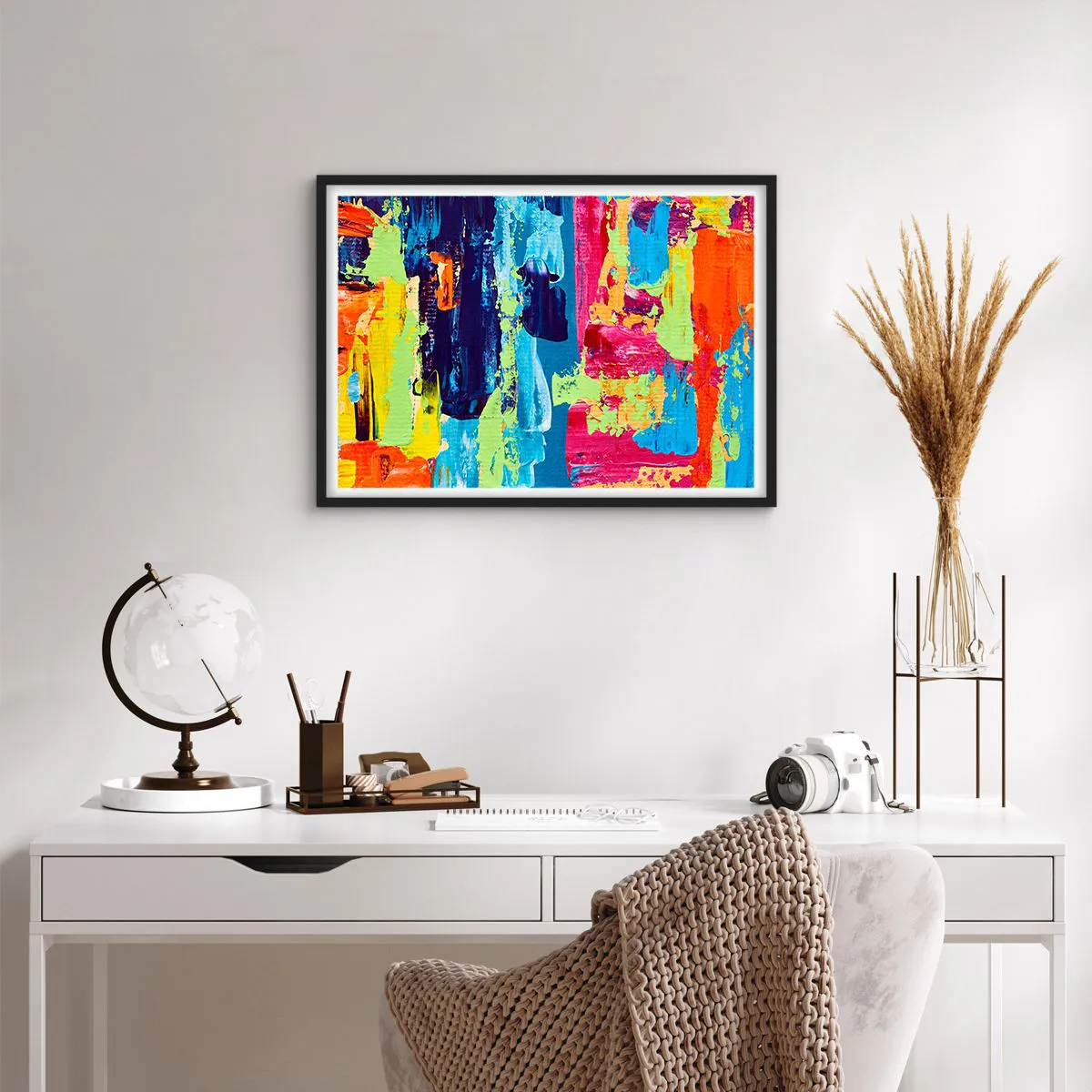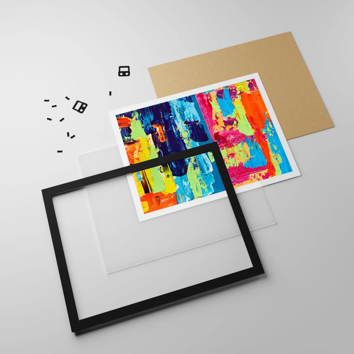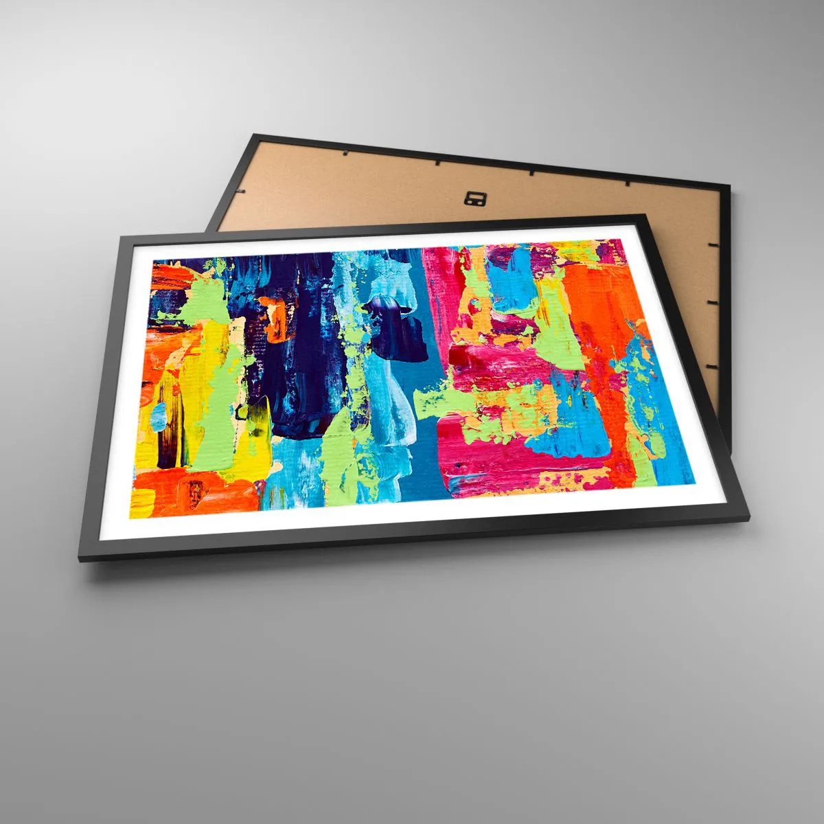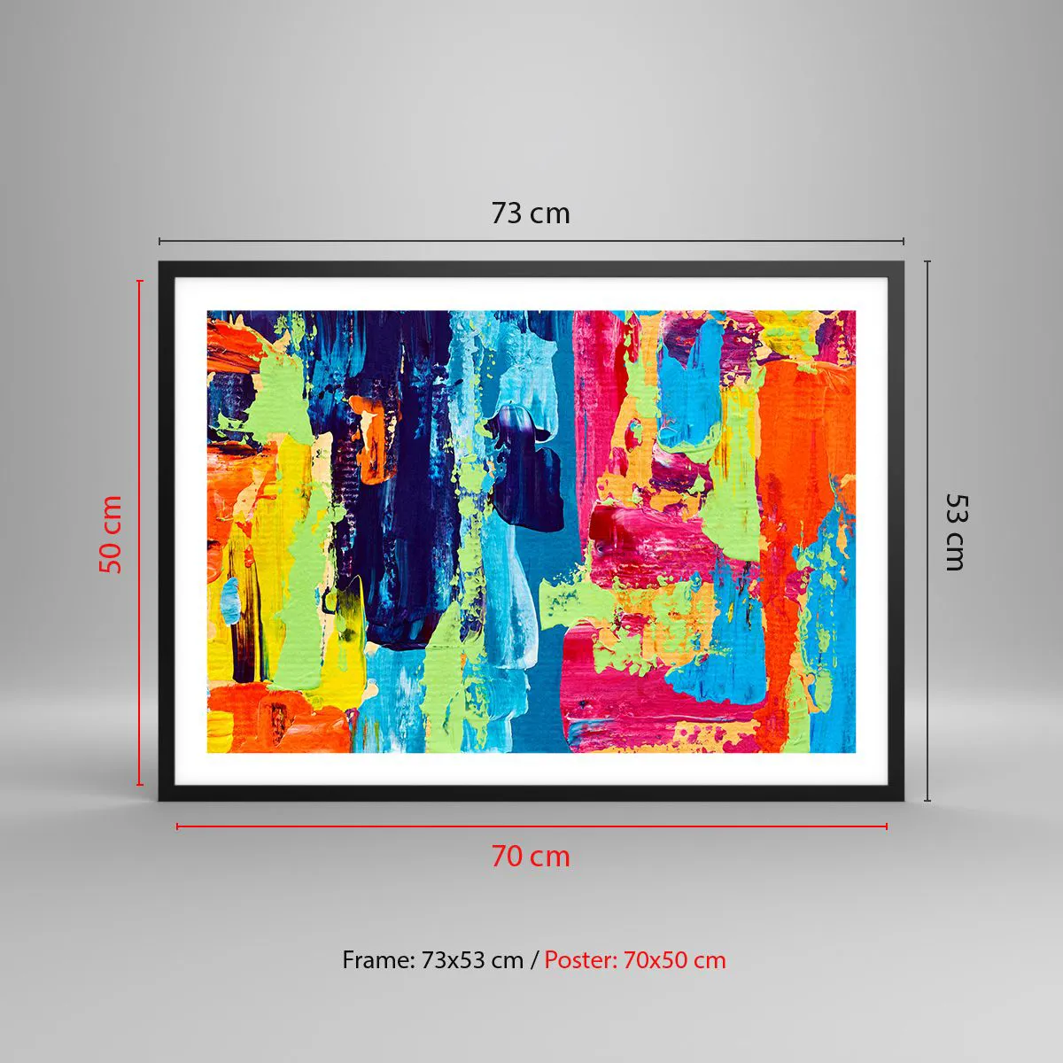 Plakat w czarnej ramie - Abstrakcyjna kompozycja kolorów w dynamicznej formie - 70x50cm - Życie jest piękne! - Nowoczesna dekoracja ścienna do salonu i sypialni ARTTOR