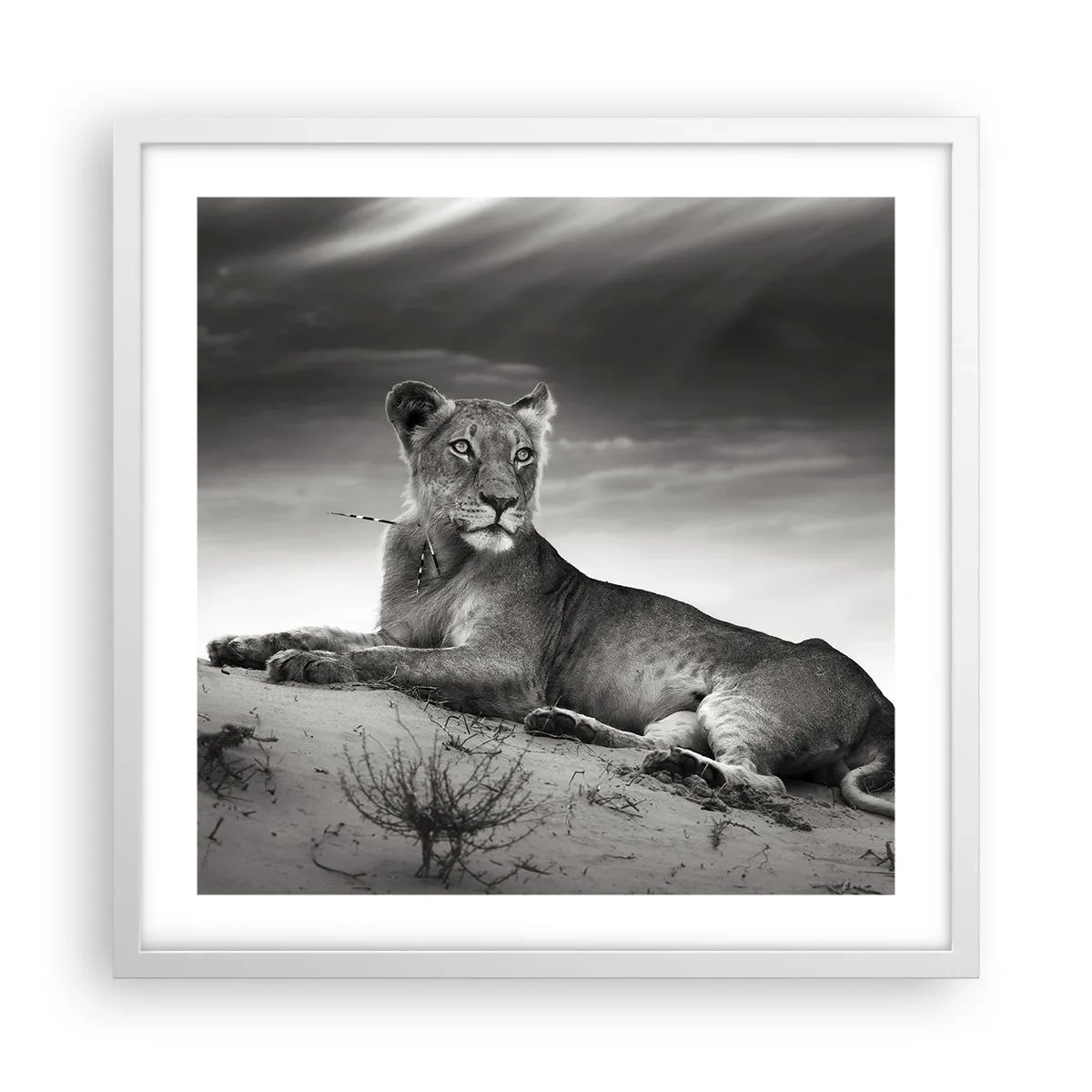 Plakat w białej ramie - Odpoczynek królowej pustyni - 50x50 cm