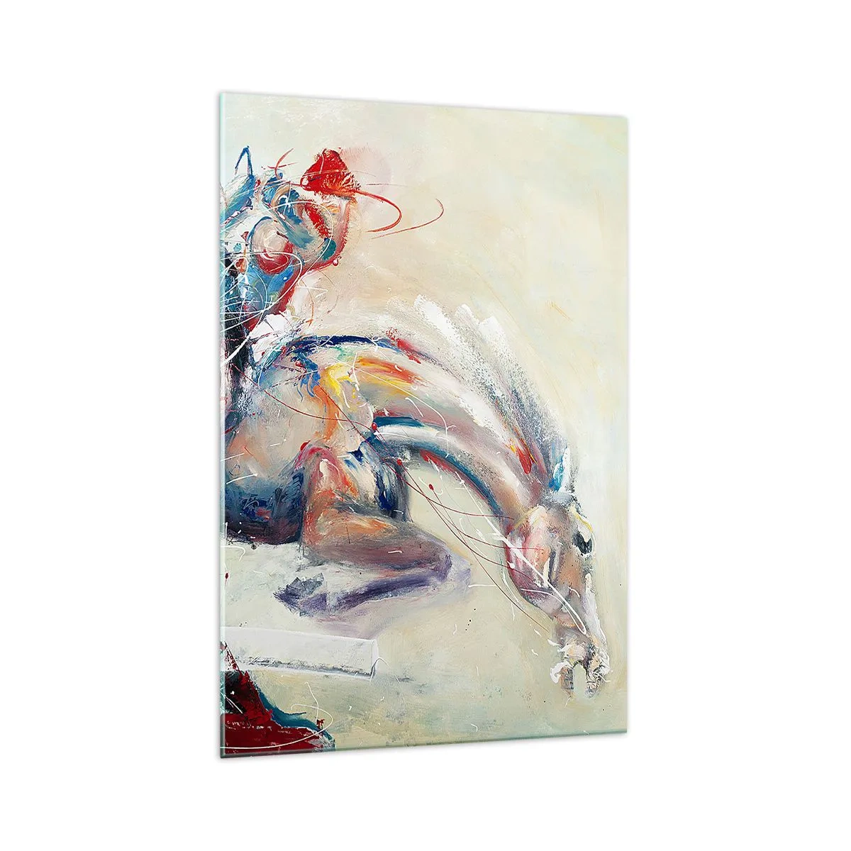 Obraz na szkle - Dynamiczny obraz konia w abstrakcyjnym stylu artystycznym - 70x100cm - Trzymaj się, lecimy - Nowoczesna dekoracja ścienna do salonu i sypialni ARTTOR
