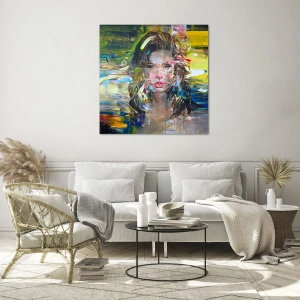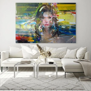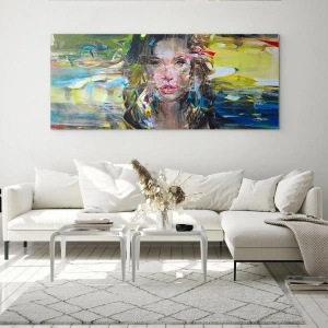 Obraz na szkle - Abstrakcyjny portret kobiety w intensywnych kolorach - 80x120cm - Za powietrza zasłoną - Nowoczesna dekoracja ścienna do salonu i sypialni ARTTOR