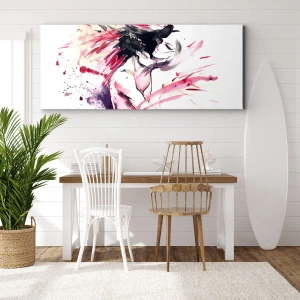 - Abstrakcyjny portret kobiety ukazany w dynamicznej kompozycji. Intensywne czerwienie i różowe akcenty dodają obrazowi energii i nowoczesnego stylu. Idealna dekoracja do wnętrz takich jak salon czy sypialnia.