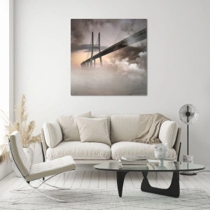 Obraz na szkle - Most we mgle z dramatycznym niebem i perspektywą głębi - 100x70cm - Nad rzeką, której nie ma - Nowoczesna dekoracja ścienna do salonu, kuchni i sypialni ARTTOR