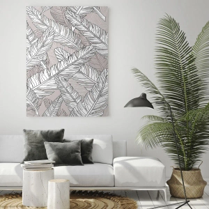 • Obraz przedstawia stylowe czarno-białe liście bananowca na beżowym tle. Minimalistyczna i elegancka grafika idealnie komponuje się z nowoczesnymi wnętrzami, dodając im harmonii i estetyki.