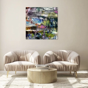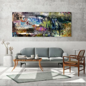 Obraz na szkle - Kolorowy kolaż graffiti w stylu abstrakcyjnym - 50x70cm - Kolaż wspomnień - Nowoczesna dekoracja ścienna do salonu, kuchni i sypialni ARTTOR