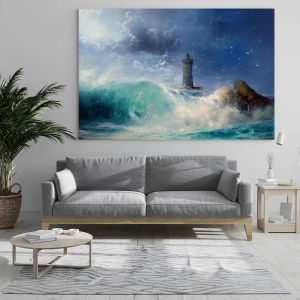Obraz na szkle - Latarnia morska wśród wzburzonych fal oceanu - 50x70cm - Na straży przeciw żywiołom - Nowoczesna dekoracja ścienna do salonu, kuchni i sypialni ARTTOR
